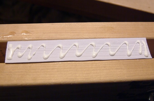 ![]() Then slide the signatures close to the edge of the vise, and squiggle glue along the folds. |