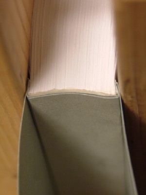 ![]() Finally, fold the cover back at 1/4" from the binding and carefully glue the cover to the 1/4"-wide exposed part of the folded-back paper. |
